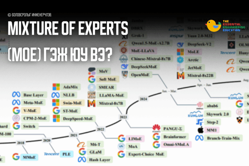 Mixture of Experts (MoE) нь машин сургалтын загваруудын нэг төрөл бөгөөд өндөр гүйцэтгэл, үр ашгийг хангах зорилгоор олон жижиг хэсэгчилсэн загваруудыг (experts) нэгтгэн ашигладаг архитектур юм. Энэ загвар нь том хэмжээний нейроны сүлжээнүүдийн тооцооллын зардлыг бууруулж, тодорхой даалгаварт илүү сайн тохируулан ажиллах боломжийг олгодог. /*! elementor – v3.18.0 – 20-12-2023 */ .elementor-widget-image{text-align:center}.elementor-widget-image a{display:inline-block}.elementor-widget-image a img[src$=”.svg”]{width:48px}.elementor-widget-image […]