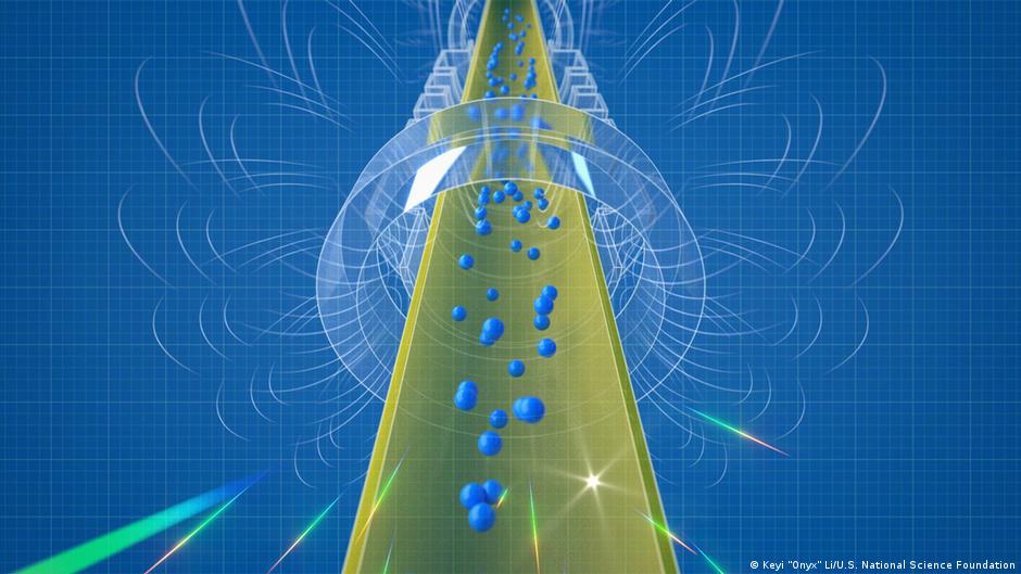 2. Хурдасгах: Эдгээр протонуудыг хоёр эсрэг чигт хоёр өөр хоолойгоор 27 км-ийн цагираг дотор явуулдаг. Хүчтэй цахилгаан орон ашиглан бөөмсүүдийг гэрлийн хурдны 99.9999991%-д хүртэл хурдасгадаг. Энэ бол секундэд 299,792 км орчим хурд юм – секундэд дэлхийг 7.5 удаа тойрох хурд!