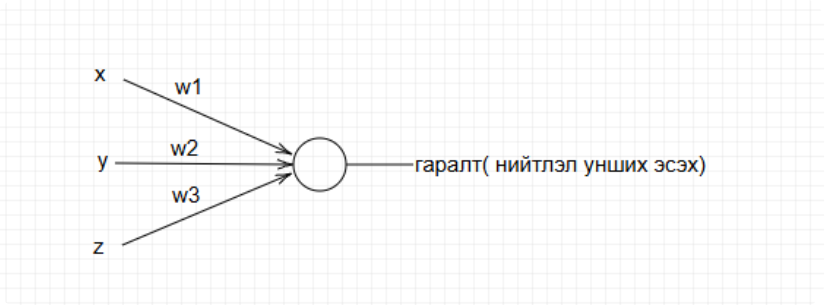 доорх зургаас гаралт= x*w1 + y*w2 + z*w3 болно гэсэн үг.