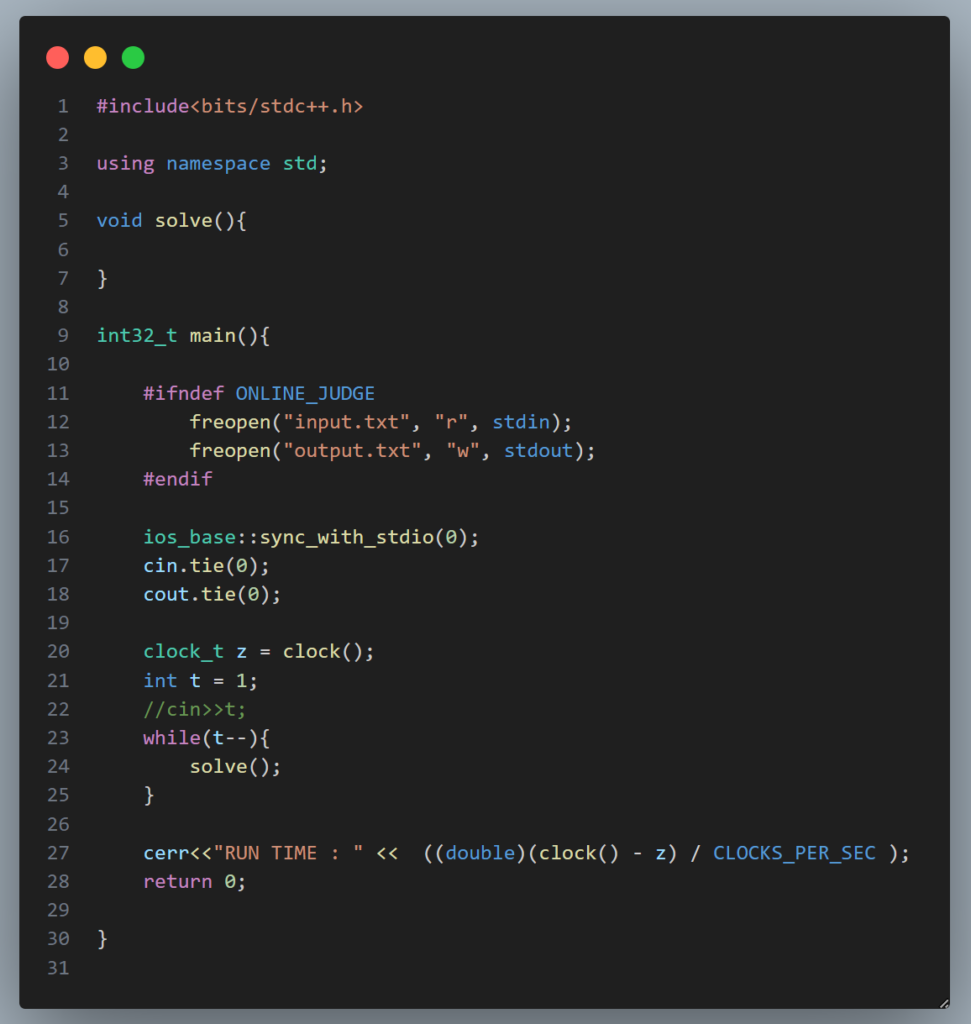 - Энэ код нь өрсөлдөөнт програмчлалын үндсэн загвар (template) юм.