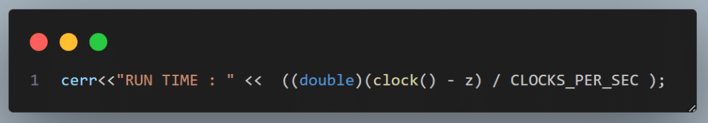 - clock() дахин дуудаж одоогийн цагийг авч байна. Эхлэх цагаас хасвал програм хэр удаан ажилласан хугацааг олно.