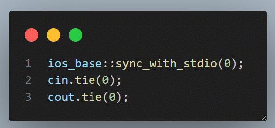cin болон cout-ийн холболтыг салгана. Ер нь cin-ээс оролт авах үед cout-ийг автоматаар гүйцэтгэдэг байдлыг таслана. - cout.tie(0);